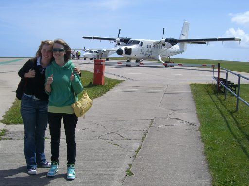 Angela and Frances at the Scilly Isles airport in 2010. This was used as the title picture of the old Holloblog which sadly is no longer available.